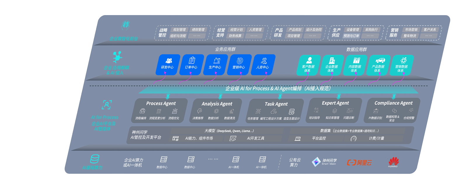 多彩网问学智车解决方案是一套基于AI技术的汽车行业智能化系统,,,覆盖从底层算力到顶层AI应用的全栈方案。。。方案由算力层、、模型层和应用层组成:算力层,,,方案支持多种一体机配置,,,,具备云端灵活部署、、、、多云适配以及动态优化计算资源的能力;模型层,,,,多彩网问学平台版提供了企业级AI应用一站式构建与管理平台,,,,支持基于后训练强化技术的汽车企业专属模型的训练、、、、评测和运营;应用层,,,,多彩网问学DeepSeek版提供包括超级员工、、、、智能招采、、智能营销、、、、智能客服、、、、AI for BI等一系列解决方案,,,可助力汽车行业实现数字化转型,,,,让管理更智能、、响应更敏捷。。。